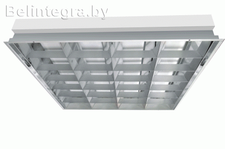 Зеркальная экранирующая решетка состоит из центральных угловых, боковых алюминиевых анодированных профилей и матовых ребристых поперечин. Конструкция растра позволяет осуществить рациональное светораспределение и гарантирует высокий КПД светильника.