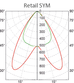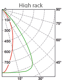 Возможны следующие варианты кривых светораспределения: Standard, Retail SYM, Retail ASYM, Wide 90, Narrow, High rack.