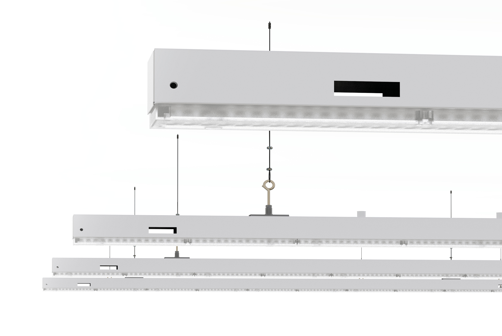 Для создания световых систем (линий, продольно-поперечных комплексов и т.д.) светильники комплектуются транзитными проводами. В базовом исполнении светильник имеет три сквозных транзитных провода сечением 1,5 мм2. По желанию заказчика светильники могут комплектоваться 5-ю транзитными проводами с сечением до 2,5 мм2 и крышками торцевыми. Также возможны одиночные версии без транзитного кабеля в комплекте с торцевыми крышками.